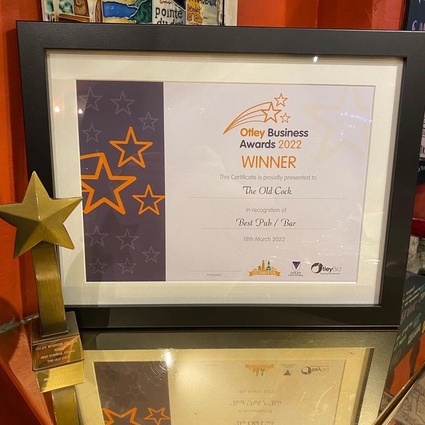 We were absolutely delighted last year to accept the award for “best pub or bar” at the Otley Business Awards.